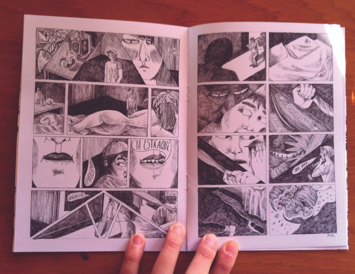 ¿Cuáles han sido los últimos proyectos en los que has estado involucrada? La exposición arriba mencionada y la autoedición del fanzine ‘Letra negra’. También estoy preparando otra exposición para finales de febrero en la sala Siroco de Madrid. Por ahora estoy trabajando en mi próxima novela gráfica, y hace poco participe en el Hay Festival en Cartagena de Indias (Del 28 al 31 de enero de 2016).