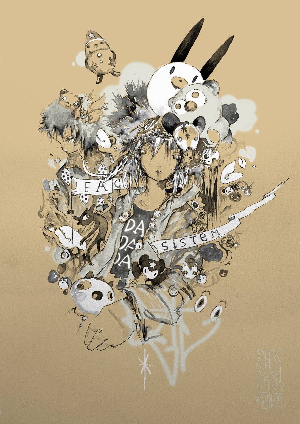 ENG: Ilia Mayer is a music producer and graphic artist. His live performances are real-time compositions in which he travels from noise to minimal, dub and ambient. Using multiple layers of textures that overlap creating drones, he constructs sound landscapes decorated with manipulated field recordings. A music that immerses the listener in hypnotic dreams and makes him travel to other worlds. He has worked with theatre and dance companies, and taken part in compilation discs from music labels based in Barcelona, like Disboot and Discontinurecords. As a graphic artist, contemplating a work of Illia Mayer is to enter a magical world populated by warriors acid house, cyberpunk teens and lost souls. Set in landscapes strongly retro, silent artist’s palette, with its fine and delicate lines, power and captures the turbulence of the amazing faces of his characters. Inspired by both the sci-fi from the 50’s, as the manga, Warhol, and the Dadaists, his works range from street-art and cutting edge illustration. Ilia is currently working through various galleries in Europe, Mexico and the U.S..