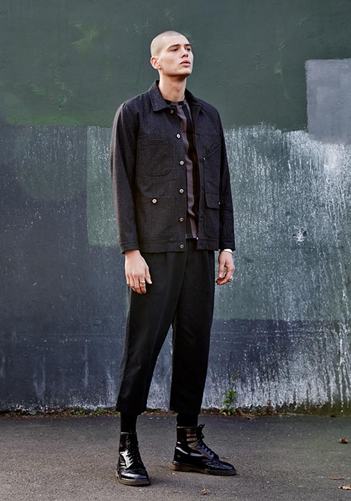 Punk’s influence can also be seen throughout the collection through military details on shirts, jackets and trousers as well as tartan checks appearing on jackets, shirts and internals. Combined with the punk aesthetic are qualities consistent across the HYMN brand; superior hand-feel, unusual textures and attention to detail in every garment.