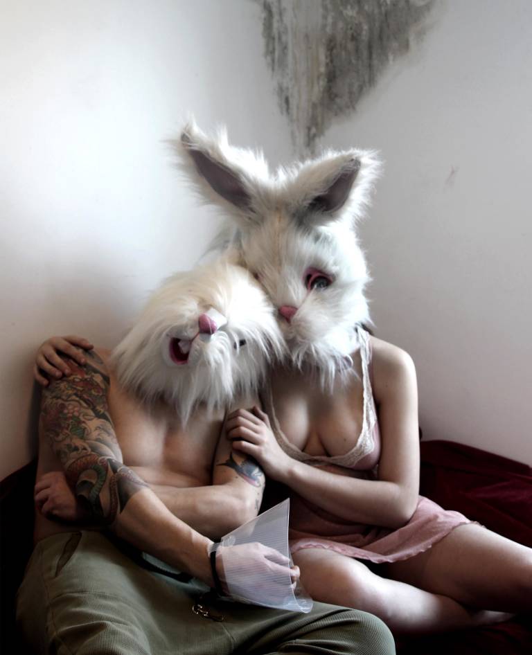 La publicación del comunicado pilló al artista valenciano Vinz en la inauguración de su exposición en la C.A.V.E. Gallery, en Los Ángeles, convirtiéndose en el centro de las conversaciones que allí se producían. Vinz es responsable desde 2011 del proyecto ‘Feel Free’, un paraguas a través del que ha invadido varias ciudades con unas criaturas mitad animal, mitad humano. Primero parte de la fotografía de modelos desnudos a las que, después, añade cabeza de animal generando un curioso bestiario que no solo se presenta en los muros callejeros sino que también ha invadido espacios como el Ayuntamiento de Valencia, la primera y única intervención hasta el momento de arte urbano en la casa consistorial. Con este universo revoloteando desde hace años, la decisión de la revista fue el impacto necesario para encender la chispa de su creatividad. “A veces es difícil poner una fecha de inicio de un proyecto, pero de repente hay un clic que te hace encontrar el ‘título’ […] Me preguntaba cómo una revista que había luchado por publicar estas fotos había decidido venderse, no es justo que cada vez los desnudos estén más censurados. Así que me apropié del personaje abandonado del conejo y puse en orden todas mis ideas”.