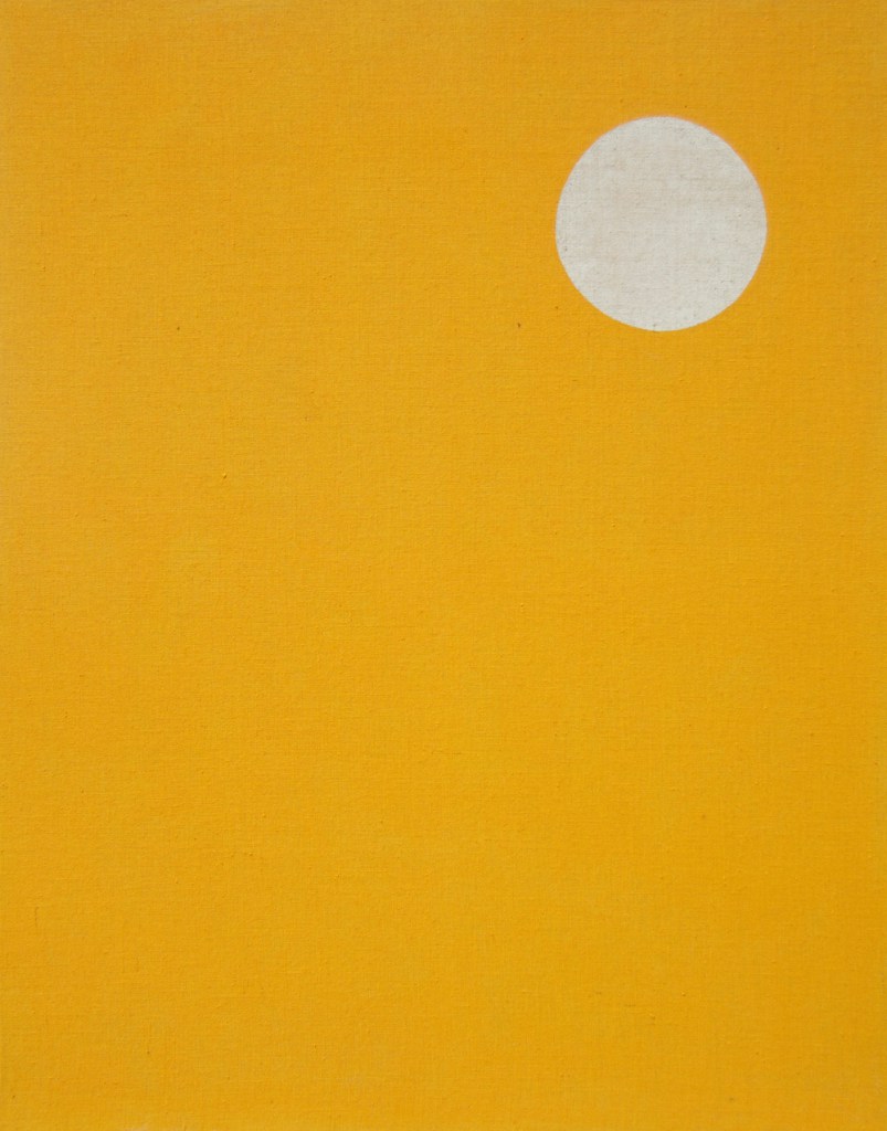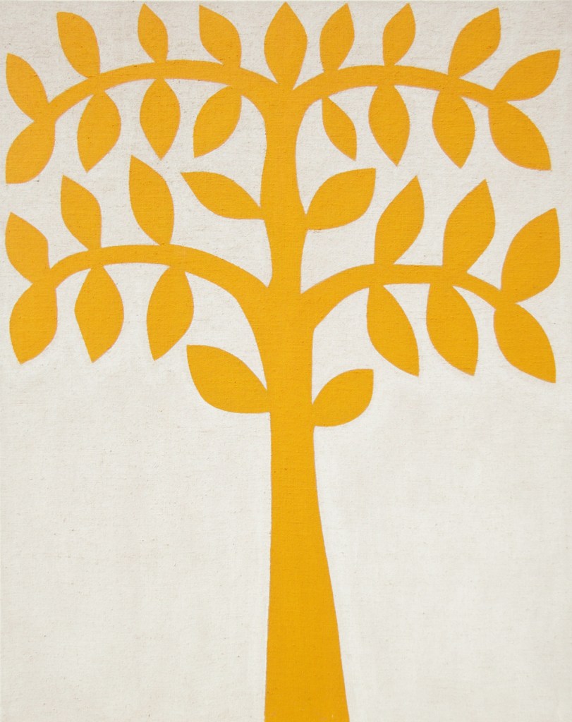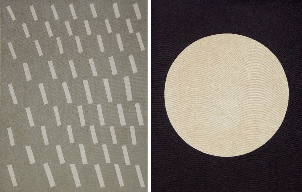 Puede descubrirse en esta doble instalación un interés por negar el carácter autónomo del cuadro, entendiéndose éstos sólo en conjunto, como estandartes que configuran una escena que repite formas circulares o triangulares y reduce a planos de color los campos, las copas de los árboles o el vuelo de las bandadas de pájaros. Todo remite al sucederse de las estaciones, a la lluvia, la luna, las estrellas y el sol. Cada uno de los árboles, en un ejercicio casi infantil de reducción formal, supone un gran cartel que se eleva encajado contra el techo, reforzando ese carácter escenográfico, pero cartel al fin y al cabo y como tal objeto de una inquietud.