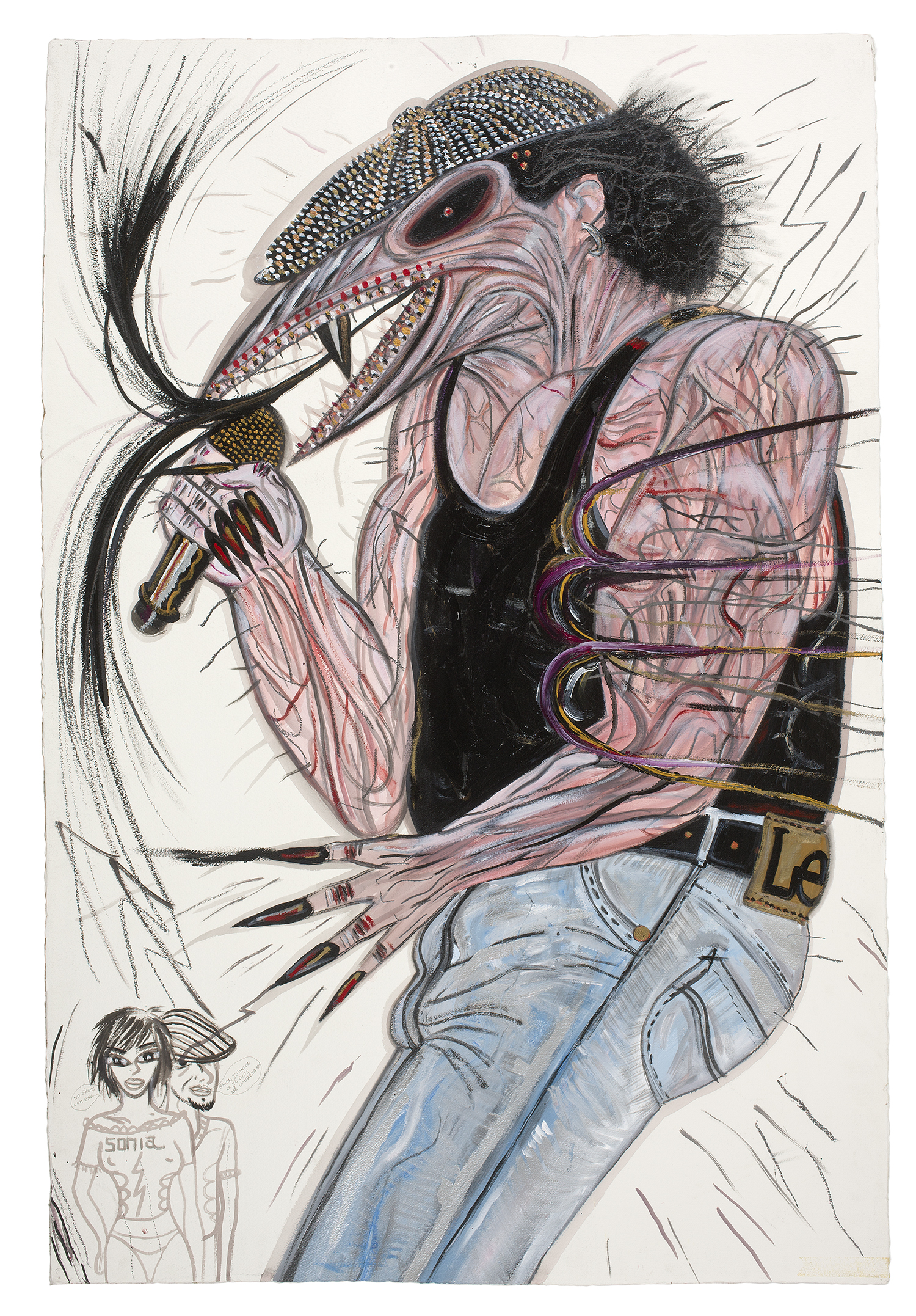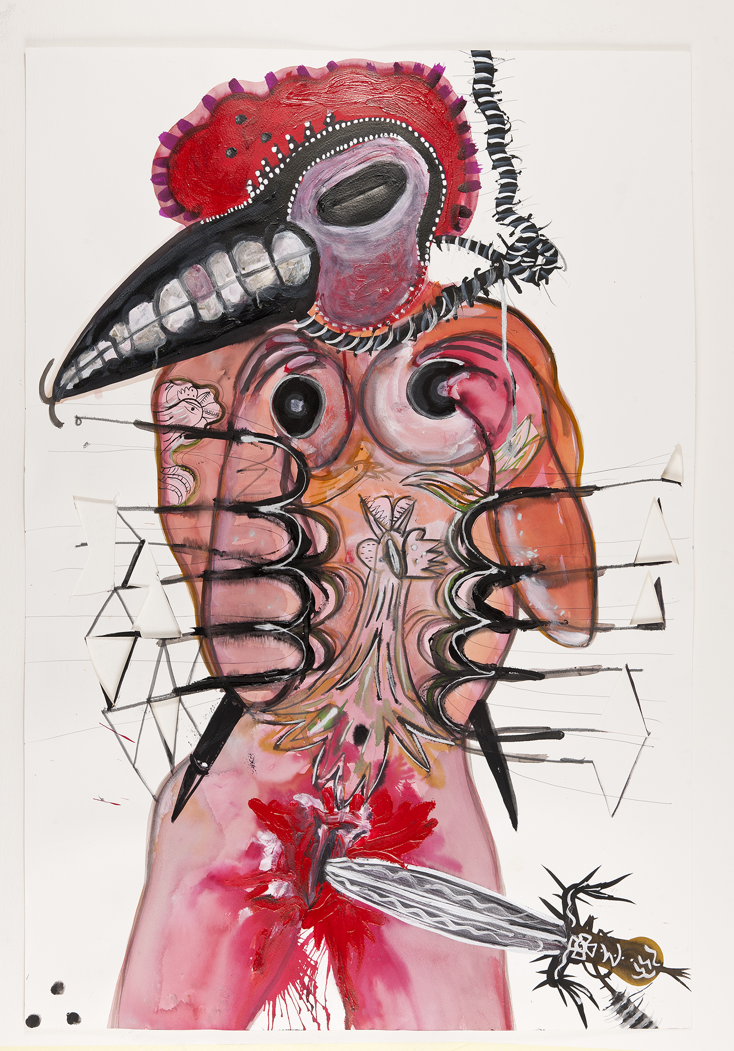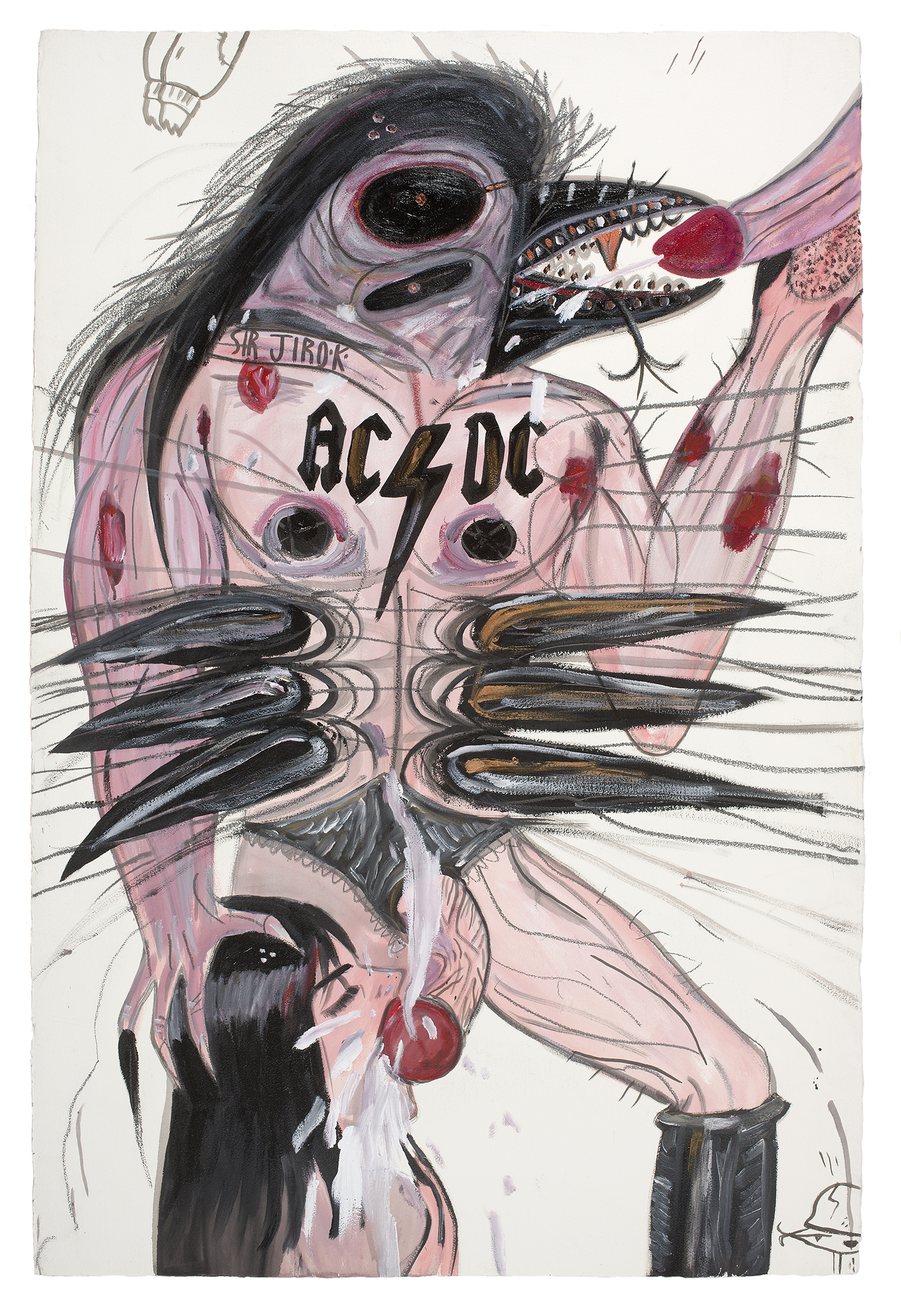 oil and senok on paper, 60.2 x 40.5 in / 153 x 103 cm