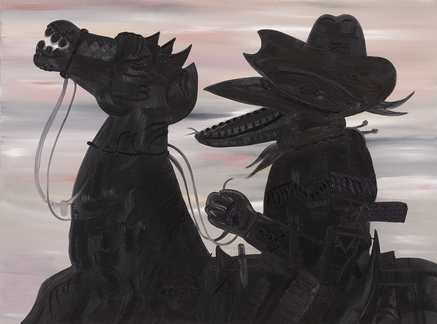 oil and senok on paper, 60.2 x 40.5 in / 153 x 103 cm