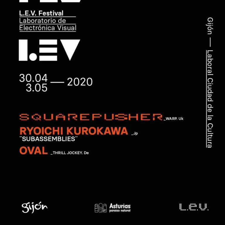 LEV Festival anuncia nuevas fechas para Gijón. La programación de esta 14 edición la encabeza el reputado artista inglés del mítico sello Warp, Squarepusher (Tom Jenkinson), uno de los nombres más prestigiosos en el ámbito de la música electrónica, que presentará su nuevo trabajo en formato de directo audiovisual en la 14 edición del L.E.V. Festival.