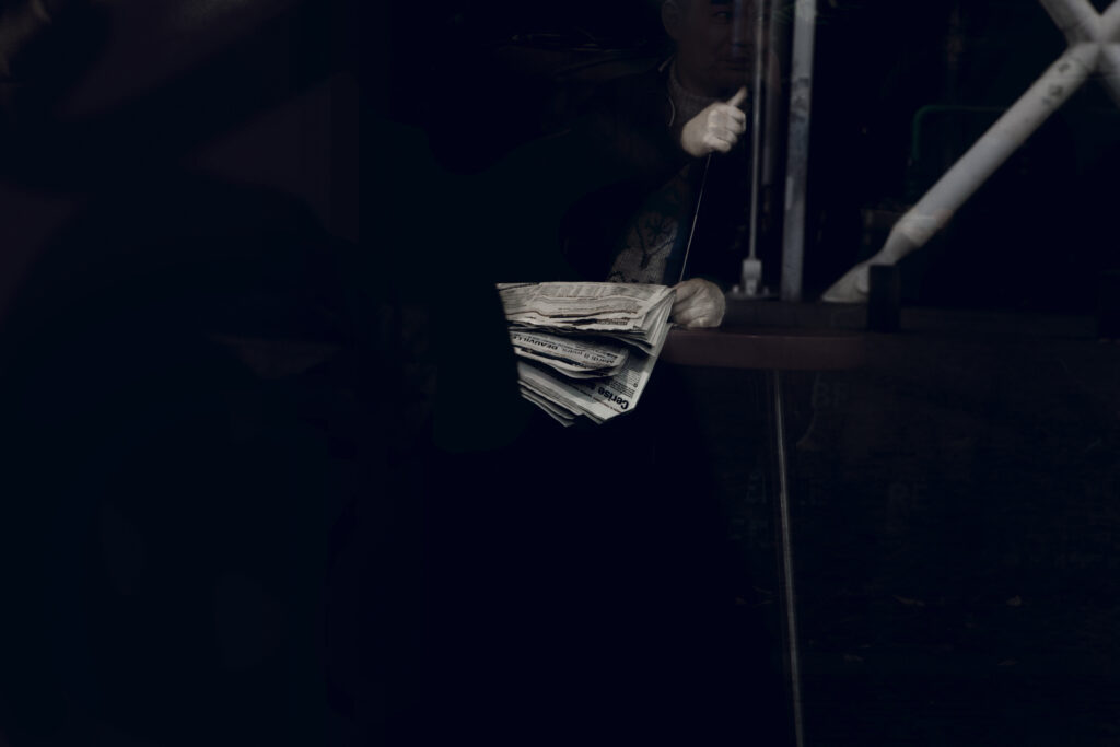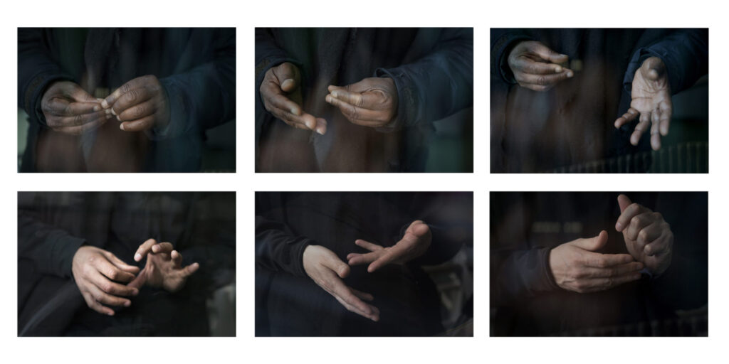 Esta es precisamente una de las zonas opuestas que Anna Malagrida captura para observarla mejor intensamente. En la penumbra del claroscuro, las manos de los jugadores se destacan en primer plano en las fotografías. Los gestos que forman, a pesar de ellos mismos, de manera compulsiva, traicionan las esperanzas, las angustias, las preocupaciones, la alegría. Los códigos clásicos con los que se comunican los jugadores de apuestas deportivas también componen la narrativa de vidas clandestinas de migrantes que no se ven o se niegan a ver.