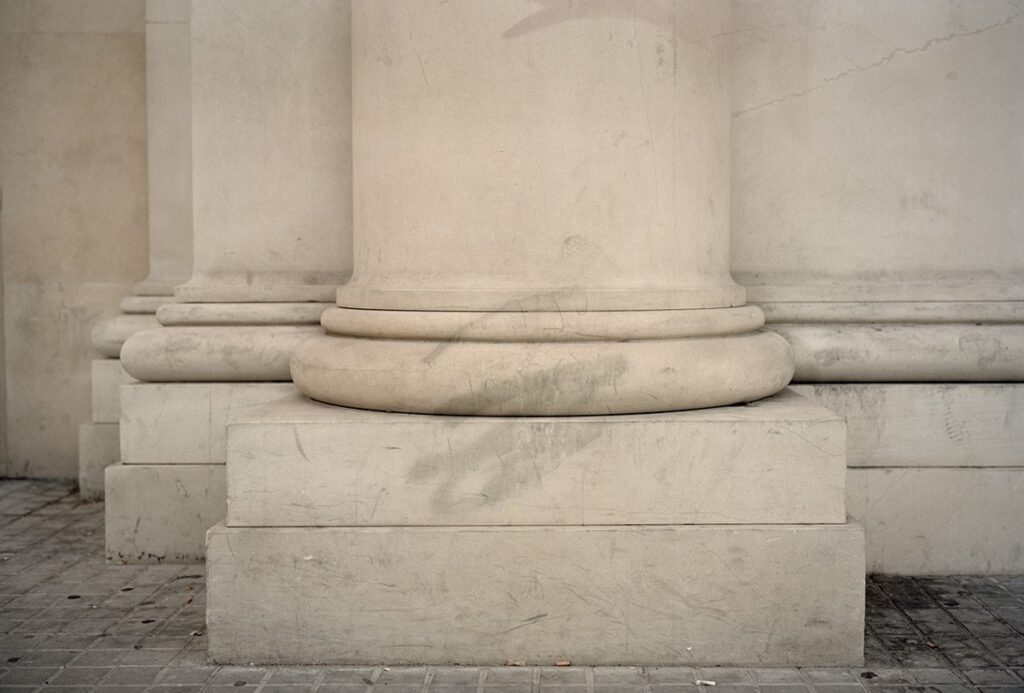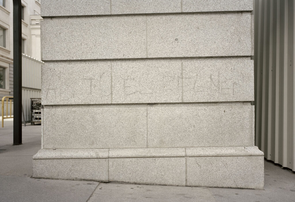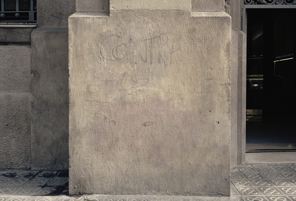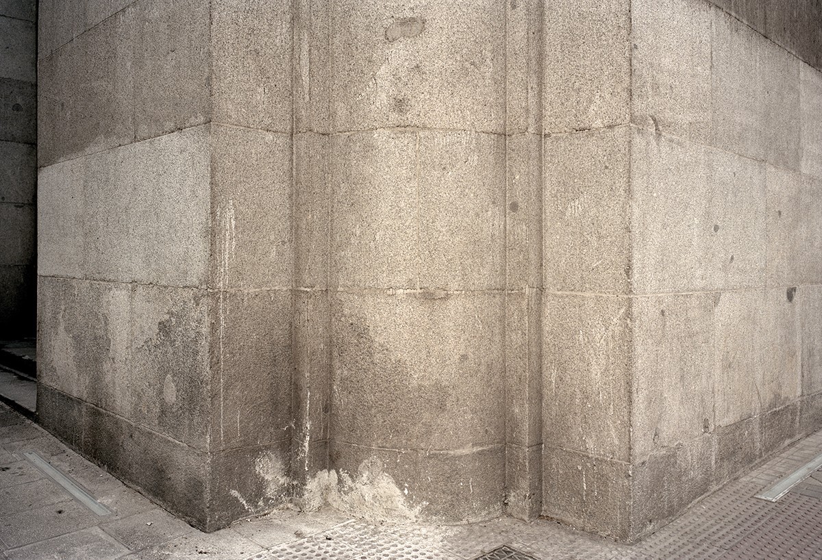 Estos son los receptáculos de la palabra del pueblo, deliberadamente borrada, casi invisible. La inscripción apenas perceptible de las palabras en la piedra es capturada por la fotógrafa en la imagen, que entonces se convierte en testimonio, un acto de resistencia ante el intento de borrar la escritura colocada por la población en los muros de las instituciones financieras, políticas y públicas de Madrid y Barcelona.