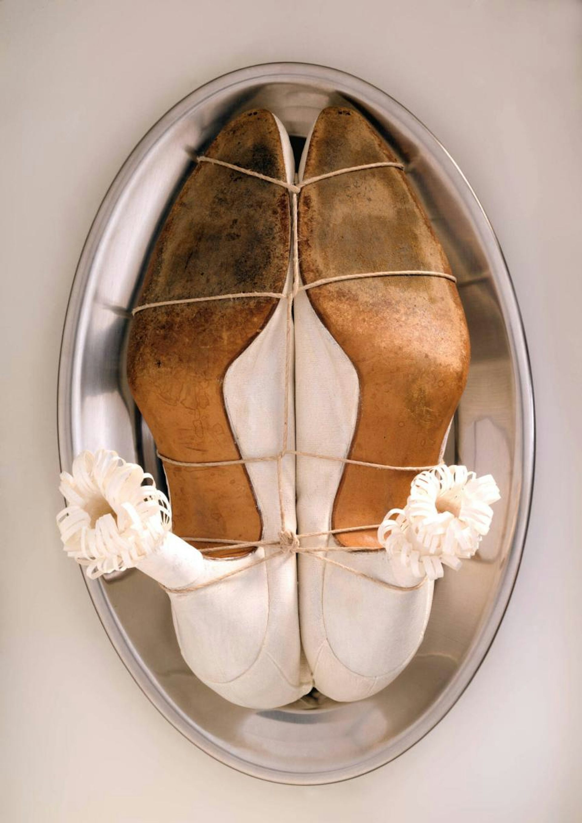 En esta pieza, relacionada con la construcción de la feminidad, el cordel puede leerse como símbolo de la opresión de los roles impuestos a las mujeres. Mientras, la semejanza de los zapatos del revés con los muslos en tensión parece sugerir que la mujer es consumida sexualmente.