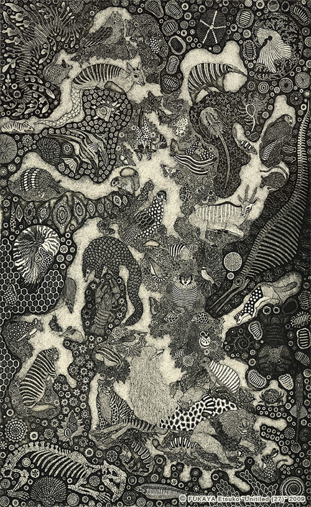 La delicadeza y precisión en los grabados de Etsuko Fukaya revelan su fascinación por la vida en todas sus formas