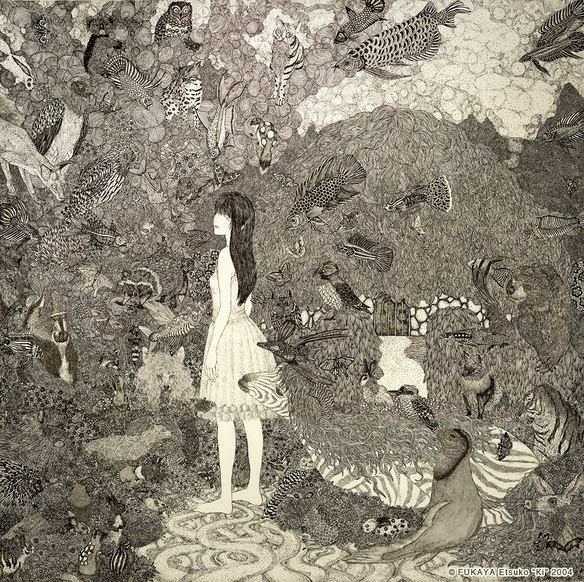 El amor por todo lo delicado llevó a Fukaya a abandonar la pintura al óleo que originalmente estudió en la Universidad de las Artes de Tokio. El grabado le permitió lograr un mayor nivel de detalle y líneas más intrincadas; su entusiasmo por esta técnica se refleja claramente en su trabajo.