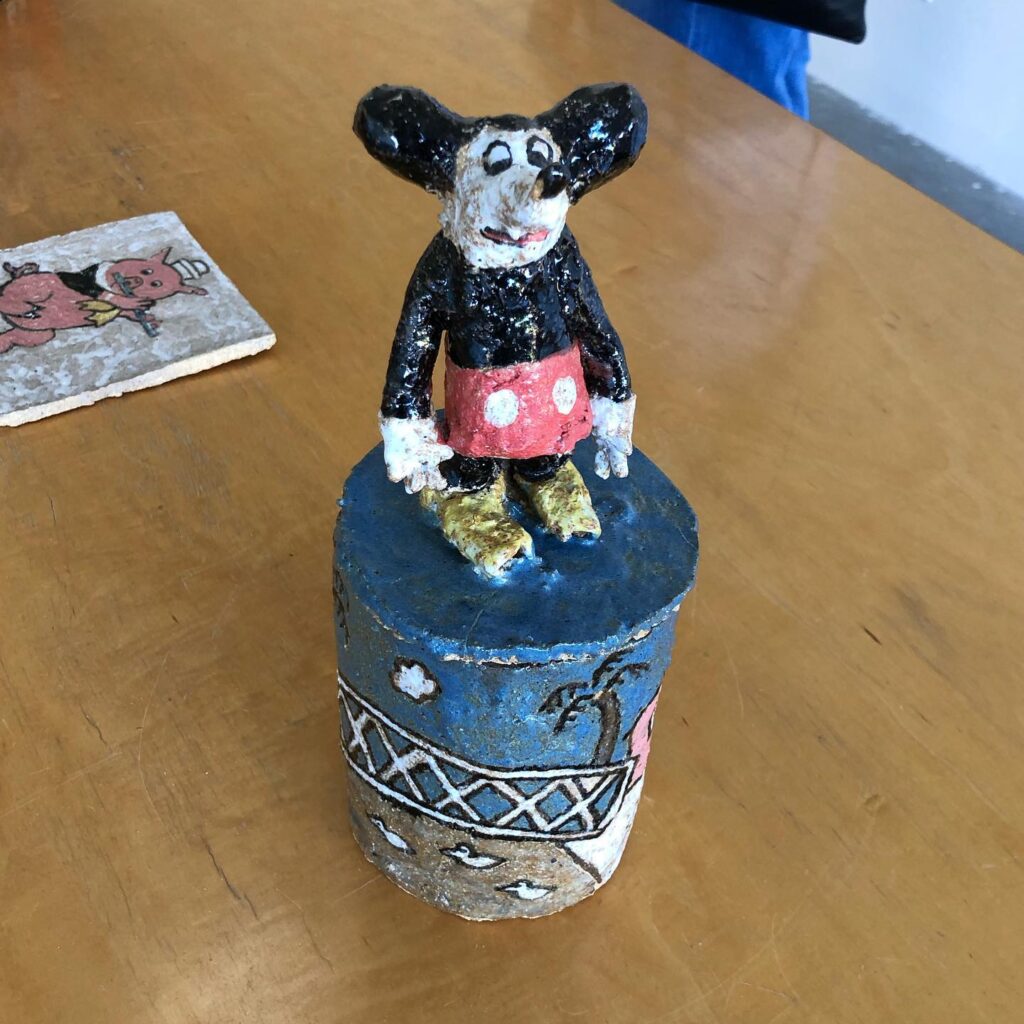 Magdalena Frimkess y la intersección de narrativas culturales. Sus obras se caracterizan por colores vivos, patrones intrincados y un agudo sentido del humor. Frecuentemente incorpora elementos de la cultura popular, incluyendo personajes de cómics, figuras de caricaturas y objetos cotidianos, creando un contraste encantador entre el arte elevado y la imaginería popular. Esta fusión de influencias da lugar a piezas tanto visualmente impactantes como estimulantes para el pensamiento.