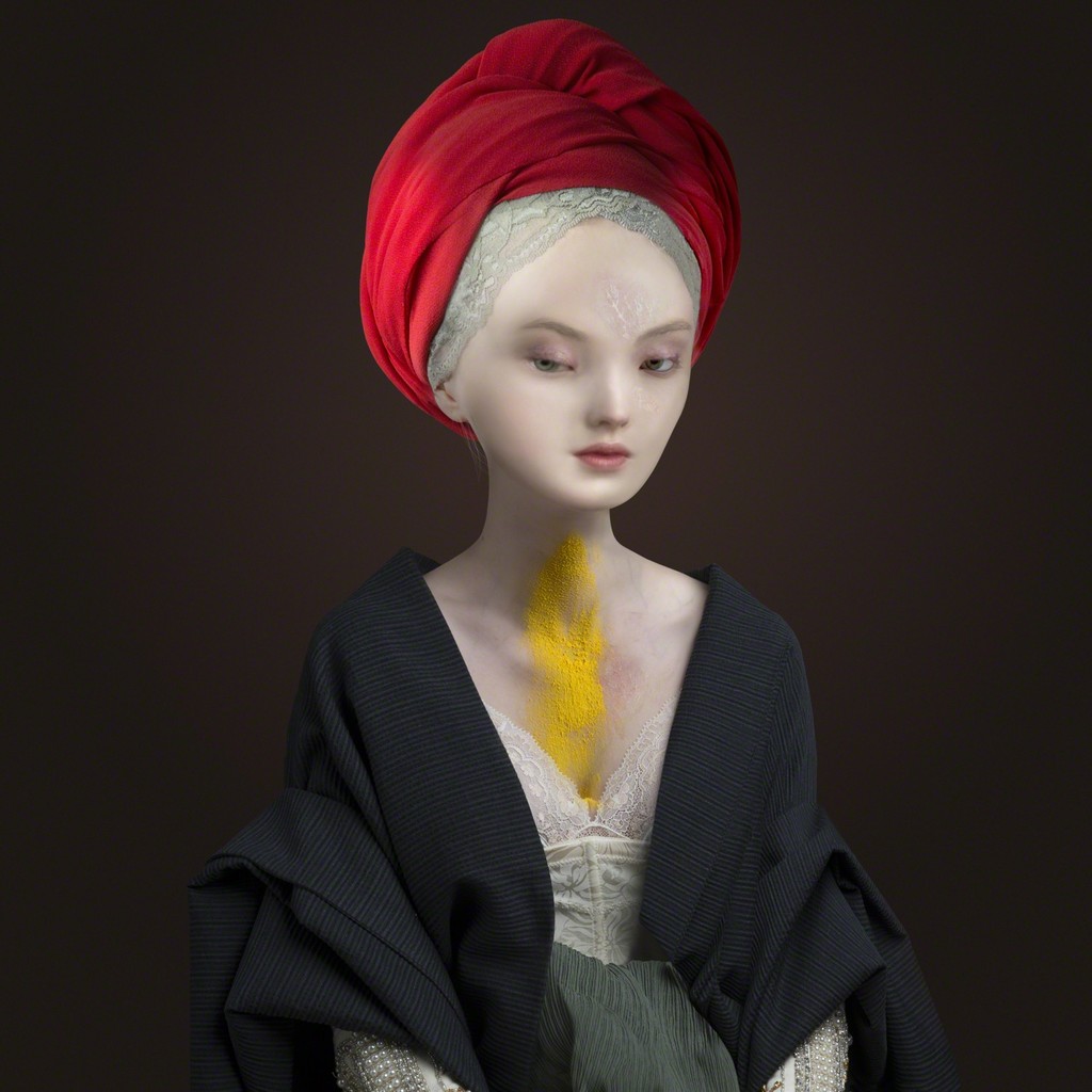 En Enfermedades preciosas Avendaño lleva la técnica a un nivel cada vez más prolijo y ampliado de rostros a personajes de cuerpo entero. Es además, su serie más personal, atravesada por sus propias dolencias y cambios. “Hace tres años, me dio una cervicalgia que me imposibilitaba moverme. Los doctores me preguntaban si había tenido algún accidente, pero nada. Fue un año duro, de cuidarme, de escuchar mi cuerpo y así le fui dando forma a esta serie”, cuenta.