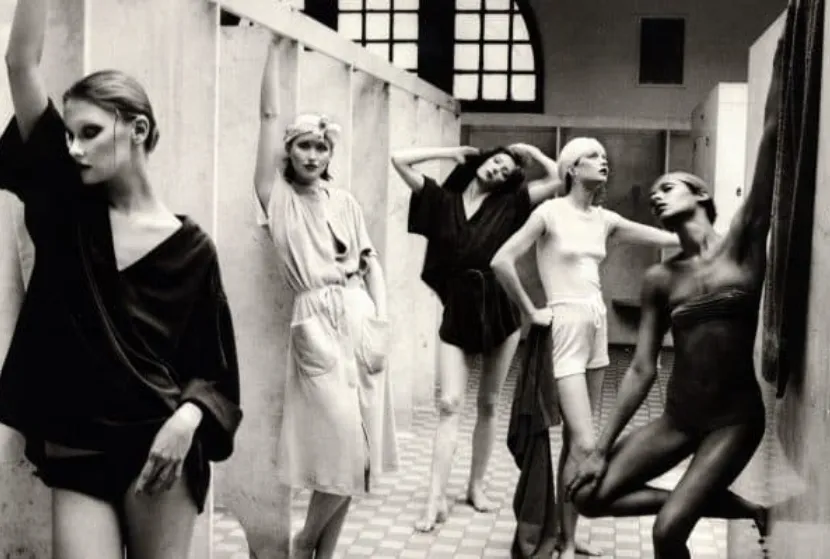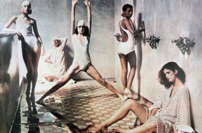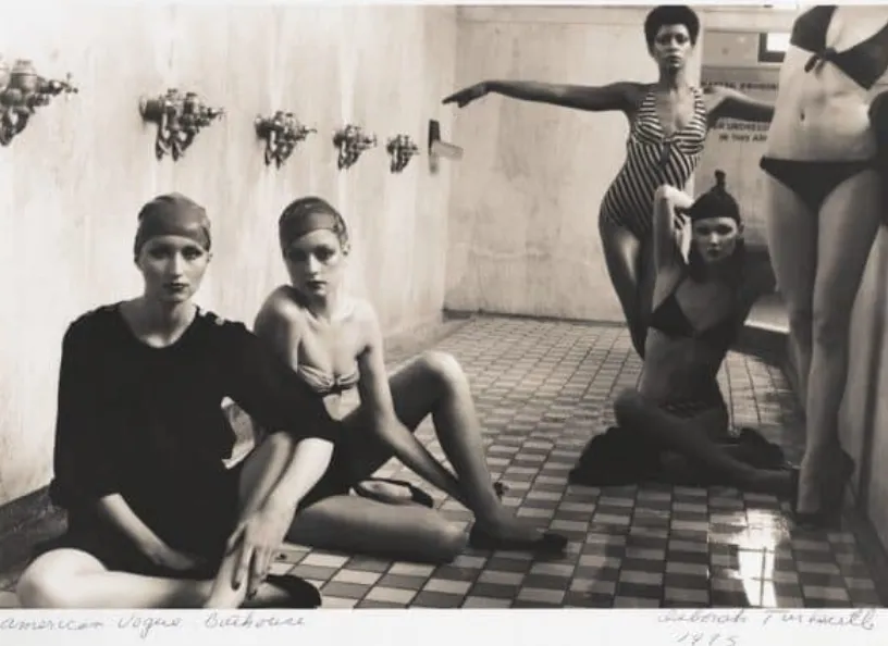 Uno de los ejemplos más emblemáticos de esta visión es la serie Bath House, publicada en Vogue en 1975. En ella, cinco mujeres aparecen en un baño público, vestidas con trajes de baño, en poses lánguidas y ligeramente desaliñadas. La escena, lejos de ser glamorosa, transmite una sensación de encierro, de vulnerabilidad. Turbeville no embellece a sus modelos: las humaniza. Las presenta como prisioneras de un sistema que las observa, las juzga, las consume.