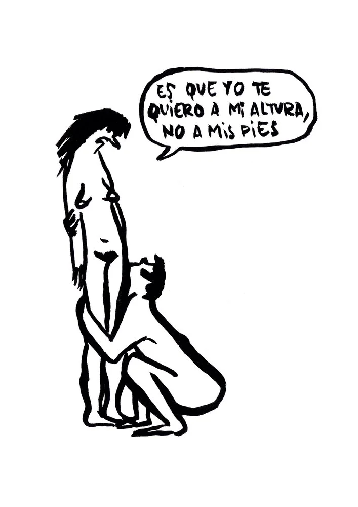 Sus viñetas son sencillas, casi minimalistas, pero esconden una potencia narrativa que desarma. El blanco y negro no es una limitación estética, sino una declaración de principios: aquí no hay distracciones cromáticas, solo la crudeza de la línea y la contundencia del mensaje. En un mundo saturado de filtros y colores chillones, ella apuesta por la austeridad visual, y el resultado es devastador.