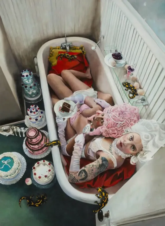 El trabajo de Brett Andrus se sostiene sobre una premisa sencilla y radical: la figura humana es un territorio narrativo. No un objeto, no un motivo, sino un espacio donde se cruzan memoria, deseo, pérdida y resistencia. Su pintura se mueve entre el realismo mágico y el surrealismo, pero no como ejercicios de estilo, sino como estrategias para revelar lo que la realidad cotidiana oculta. Andrus no pinta lo que ve; pinta lo que persiste.