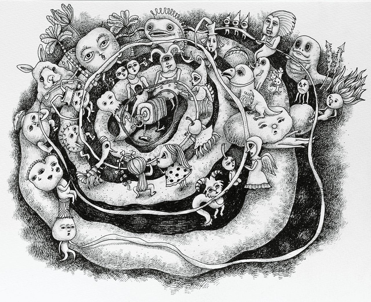 Como las ilustraciones de Moebius, mis pinturas son un paraíso de cuento de hadas sin entrada ni salida, una fantasía que continúa infinitamente, historias sin principio ni final.