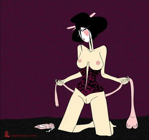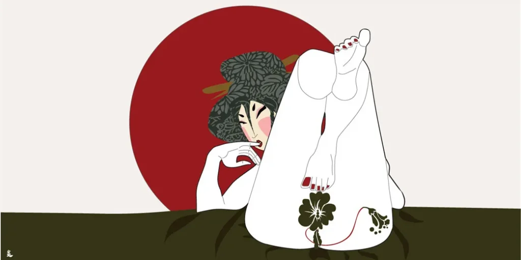 Pero es en sus ilustraciones vectoriales donde se revela con mayor claridad la esencia de Japi Honoo. Estas obras, impregnadas de un amor profundo por la cultura japonesa, muestran a las geishas como protagonistas indiscutibles. No se trata de una representación superficial ni de un exotismo vacío; Honoo convierte a las geishas en símbolos de elegancia, encanto y tradición, pero también en emblemas de poder y libertad femenina. Sus figuras, eróticas y sensuales, se presentan desinhibidas, mostrando su sexualidad con naturalidad y reivindicando el derecho de la mujer a ser madre, esposa y amante sin renunciar a su autonomía ni a su deseo.