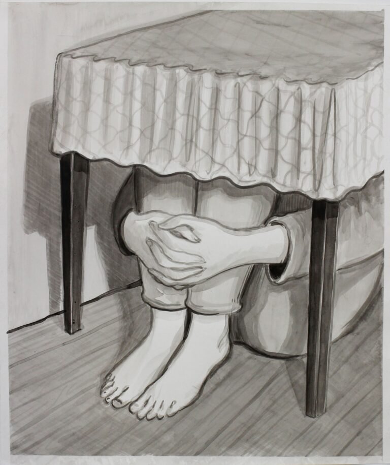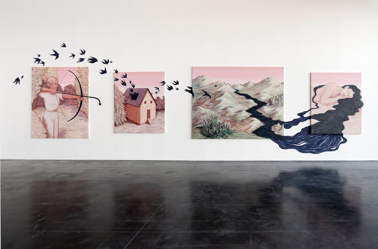 Estos cuentos infantiles, habitados por fantasmas y marcados por huidas precipitadas —como el gran formato Faire un Tour, desplegado a modo de instalación— nos remiten finalmente a composiciones surrealistas. En ellas, más que una ventana abierta al mundo, el cuadro funciona como un revelador de las necesidades fundamentales del alma humana.