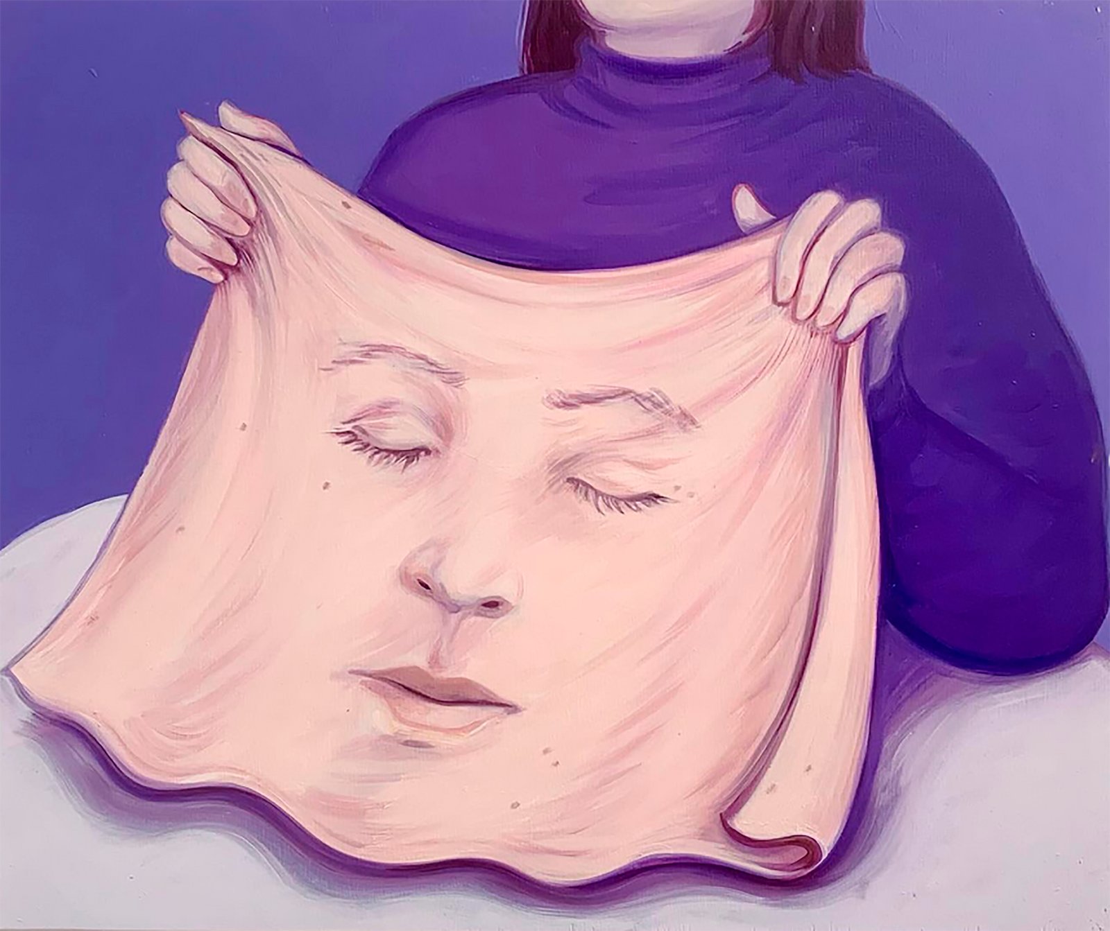 Mostrar los artificios, señalar con el dedo la falsedad de la representación, Lise Stoufflet no oculta en absoluto la materialidad y la especificidad de la pintura. No se trata de crear ilusión. Al contrario, la pintura exhibe un metadiscurso: señala sus propios medios y funciones al representar plásticamente aquello que no es real.
