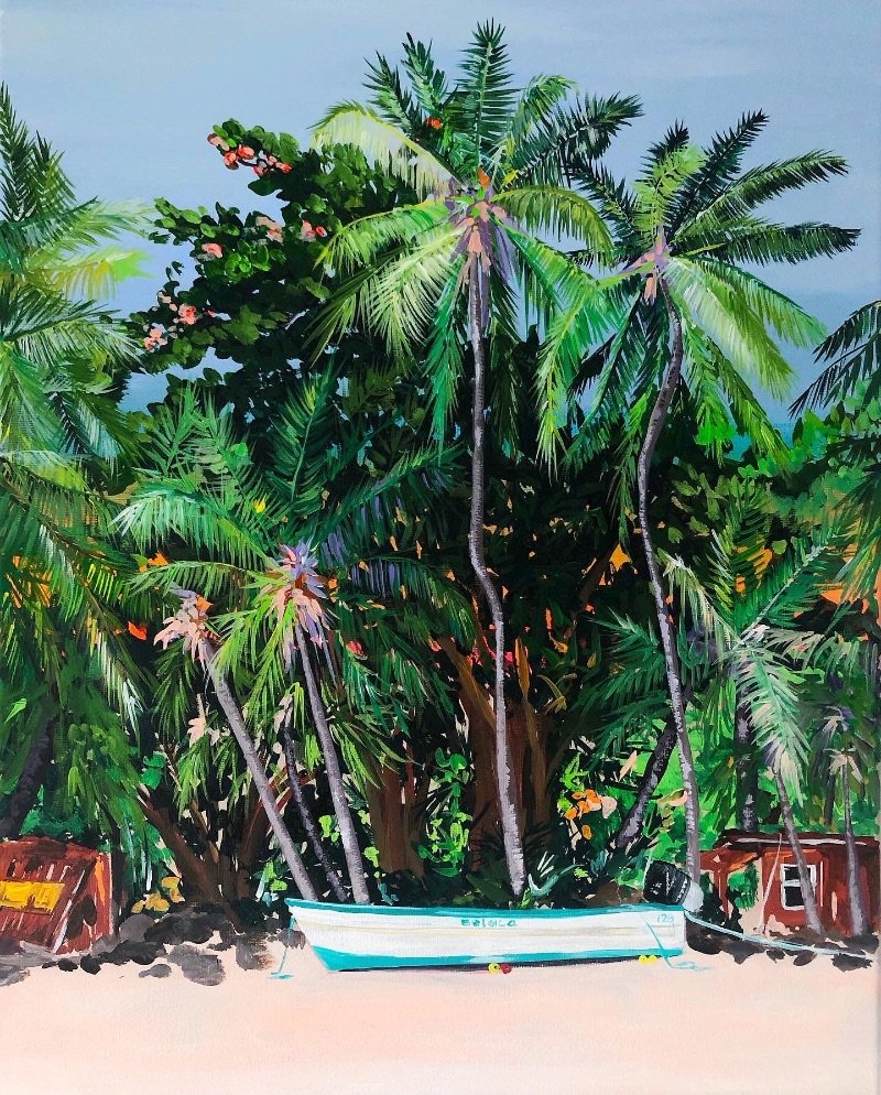Esa etapa no quedó atrás: se transformó en la base conceptual de sus pinturas actuales. En ellas, el color funciona como un lenguaje emocional, el patrón opera como ritmo visual y la figura humana se convierte en protagonista silenciosa de historias fragmentadas.