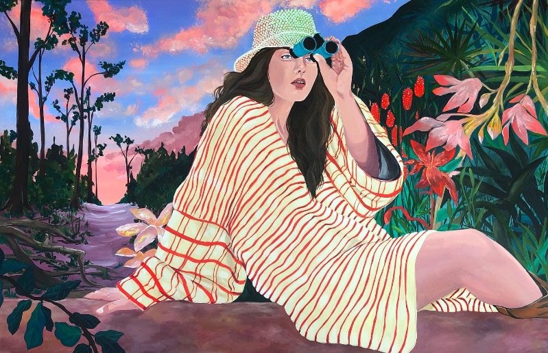 Los cuadros de Van Meerhaeghe combinan elegancia y humor, dos fuerzas que conviven con naturalidad en su obra. La artista construye escenas íntimas donde mujeres contemporáneas habitan espacios casi teatrales y utilizan el gesto como un idioma sutil. Un cruce de miradas, una postura incompleta o un objeto cotidiano pueden activar interpretaciones abiertas, evocando la complejidad de la autoimagen y el peso de las expectativas sociales.