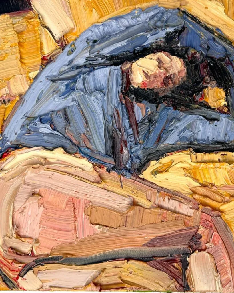 Graduada en Bellas Artes por la Escuela Michaelis en 2017, Southwood empezó en la fotografía. Quizá por eso sus cuadros tienen esa precisión que no perdona, esa forma de atrapar la luz como si fuera un secreto que alguien dejó olvidado en la mesa. Pero la fotografía, con toda su exactitud, no le bastó. Había emociones que no cabían en un obturador. Había silencios que necesitaban más tiempo para decir lo que tenían que decir.