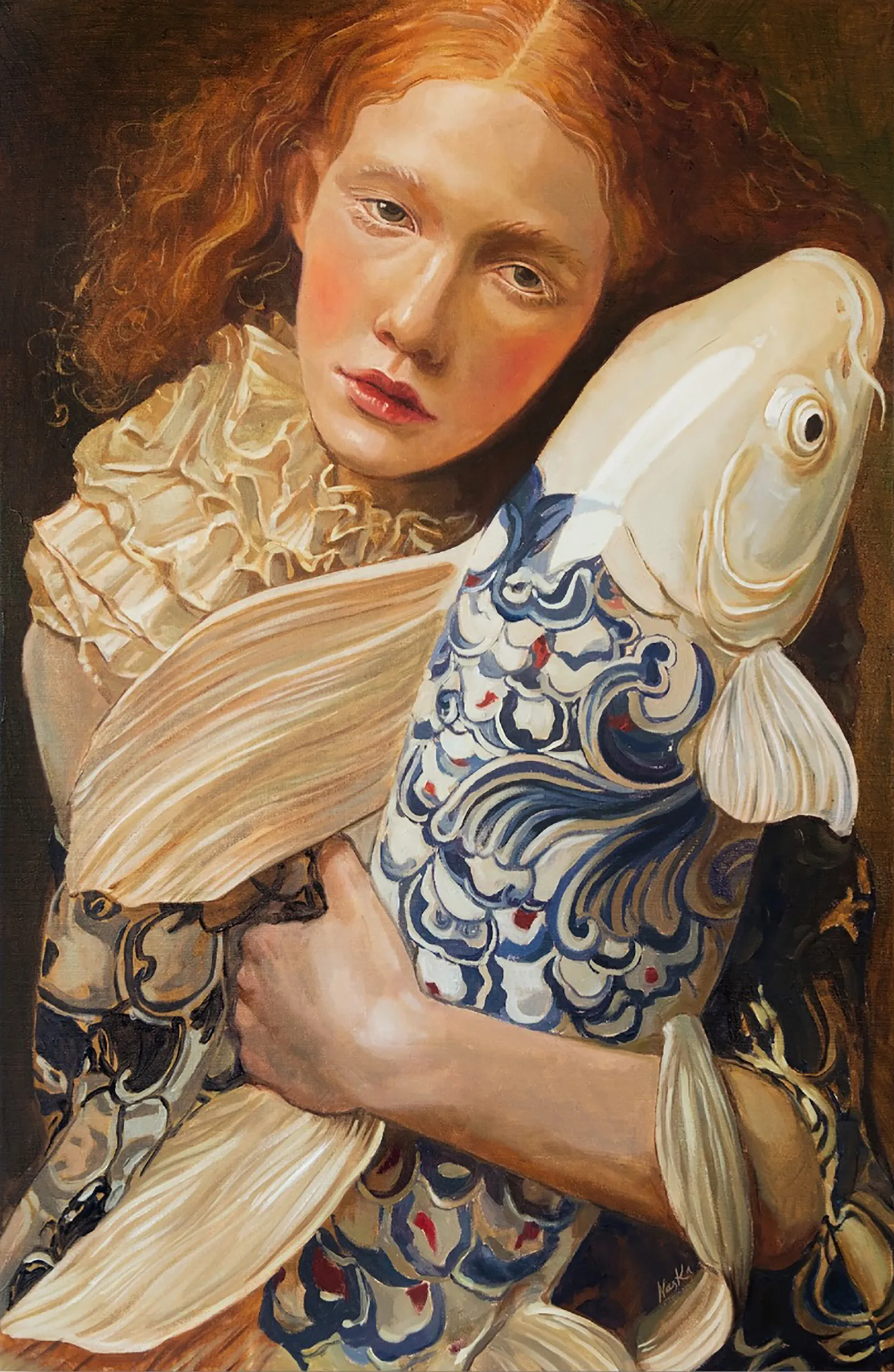 La experiencia migratoria, la distancia física y emocional respecto a su familia de origen, y la vivencia de la maternidad despertaron en ella la necesidad de regresar a la pintura como medio de expresión profunda. En este contexto, su obra encuentra una fuerte conexión con el arte japonés del Kintsugi, técnica que repara las piezas rotas resaltando sus grietas con oro. Para NASKA, esta filosofía se convierte en una metáfora poderosa: no ocultar las fracturas, sino honrarlas y convertirlas en parte esencial de la belleza. Durante los últimos dos años, la artista ha desarrollado un lenguaje visual propio, caracterizado por composiciones sensibles, texturas cuidadas y una narrativa emocional coherente.