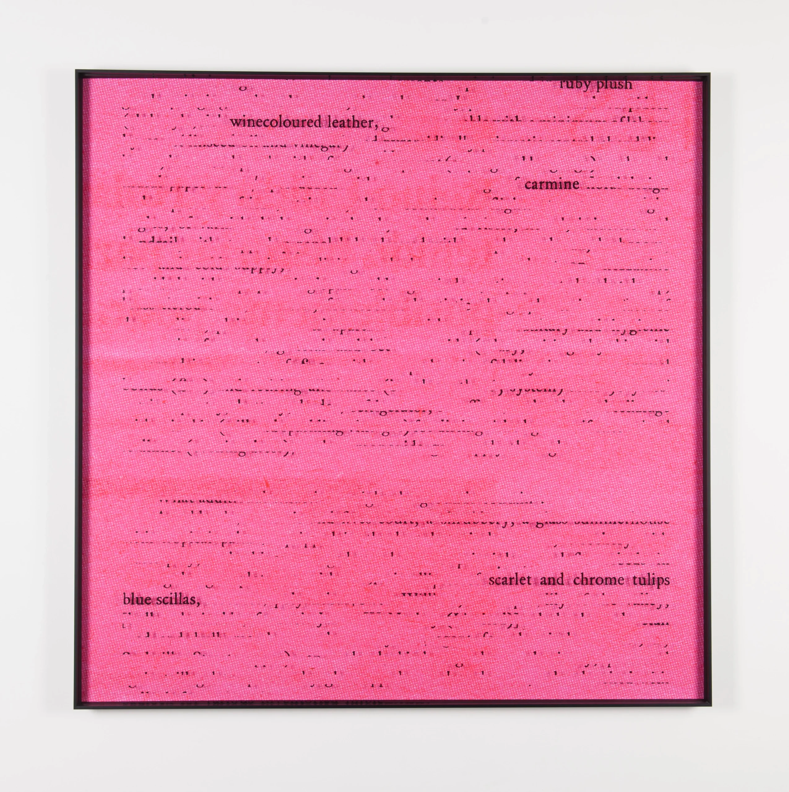 Entre las cuestiones abordadas por la obra de Aballí, podemos destacar el análisis del lenguaje y, más concretamente, la relación entre texto e imagen, entre las palabras y las cosas o entre los objetos y los términos que los definen. Algunas de las obras presentes en la exposición que ilustran estos conceptos son, por ejemplo, la serie de las denominadas Cartas de colores [Teoría] (2007) o las Vitrinas CMYK (2010), cuatro vitrinas -una por cada color de las tintas que se utilizan en los procesos de impresión- en las que el soporte convencional de la obra de arte se convierte en la propia obra y cuya función no es la de mostrar sino la de “demostrar” la paradoja de lo que no se ve.