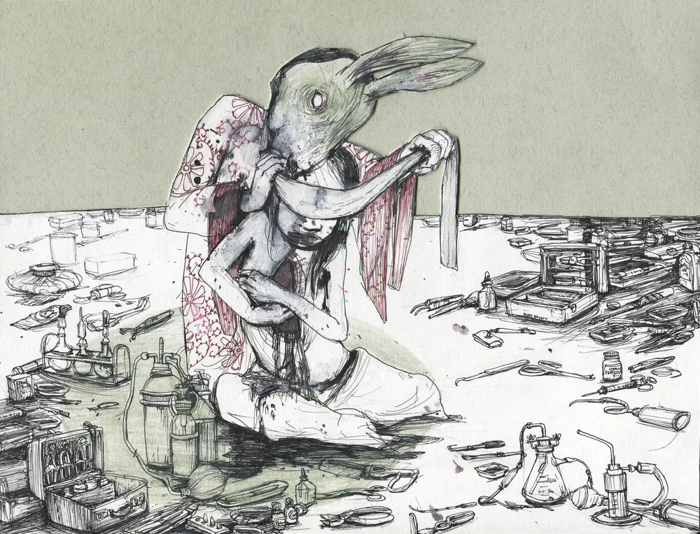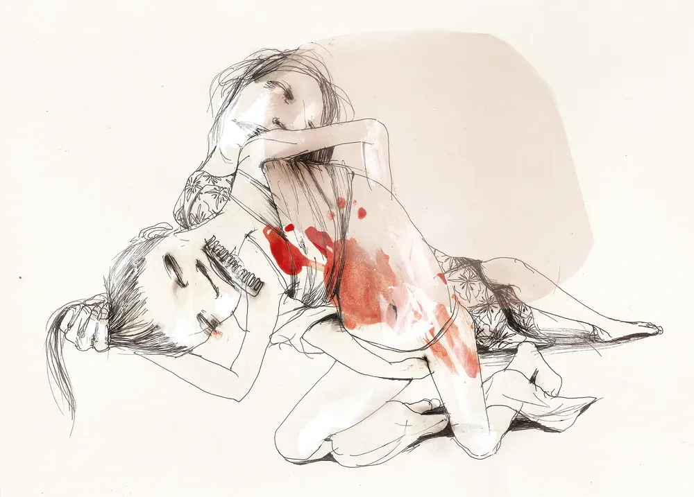 Y así nació Darkam, o quizá siempre estuvo ahí, esperando que Eugenia le abriera la puerta. Su estilo es un puñetazo envuelto en terciopelo sucio: oscuro, caótico, aparentemente incompleto. Como si cada ilustración fuera un cadáver a medio enterrar, una historia que no se termina porque la vida tampoco lo hace. Te obliga a detenerte. A mirar. A mirar de verdad, no como miras el móvil o el reloj o la cara de alguien que ya no te importa.