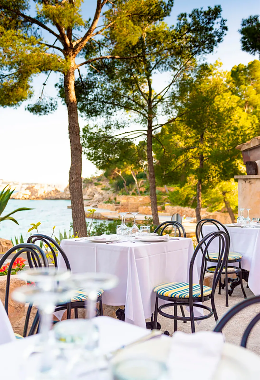 El restaurante y el Snack Bar del hotel Cala Fronells cuenta con una romántica terraza, un claro protagonista de la experiencia, la mejor ubicación y vistas sobre las claras aguas de Cala Fornells. Con propuesta sencilla e internacional, con algunos guiños a lo local como el típico “trempó mallorquín” o el clásico “pa amb oli”. Por supuesto, el ambiente relajado junto con un servicio atento y familiar completan la experiencia gastronómica.