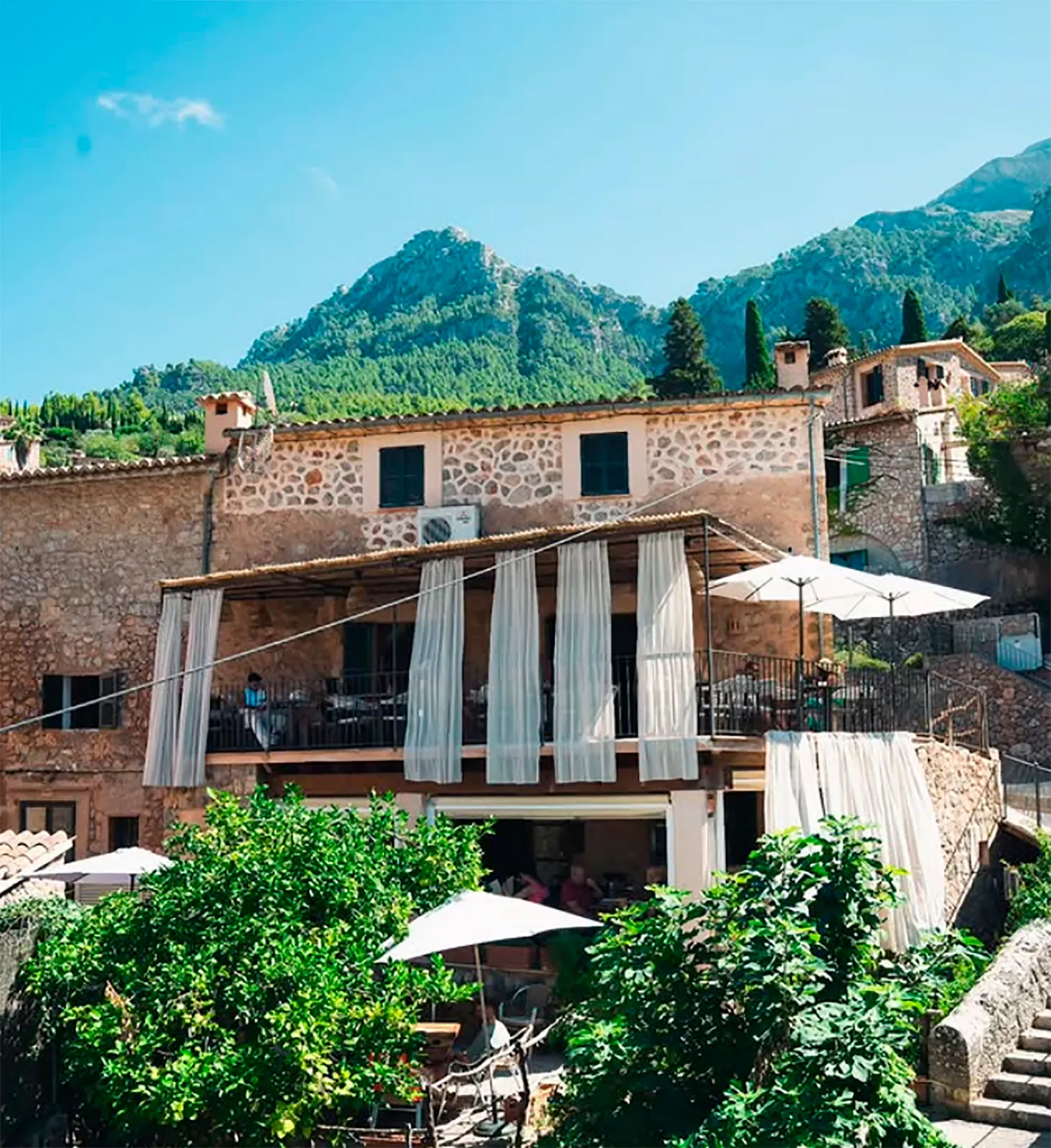 Ubicado en el precioso pueblo Deià con un balcón con vistas al valle y la montaña. Cocina italiana con platos como el risotto con toque dulce de calabaza, aroma de azafrán, sobrasada y gambas que sabe a hogar y sorprende en cada bocado. Si eres amante de las pizzas aquí preparan artesanas como la pizza butterfly de masa de larga fermentación de harina orgánica semiaberta, salsa de tomate San Marzano, Mortadela D.O.P de Modena, pesto de albahaca y pistacho y mozzarella de Búfala.