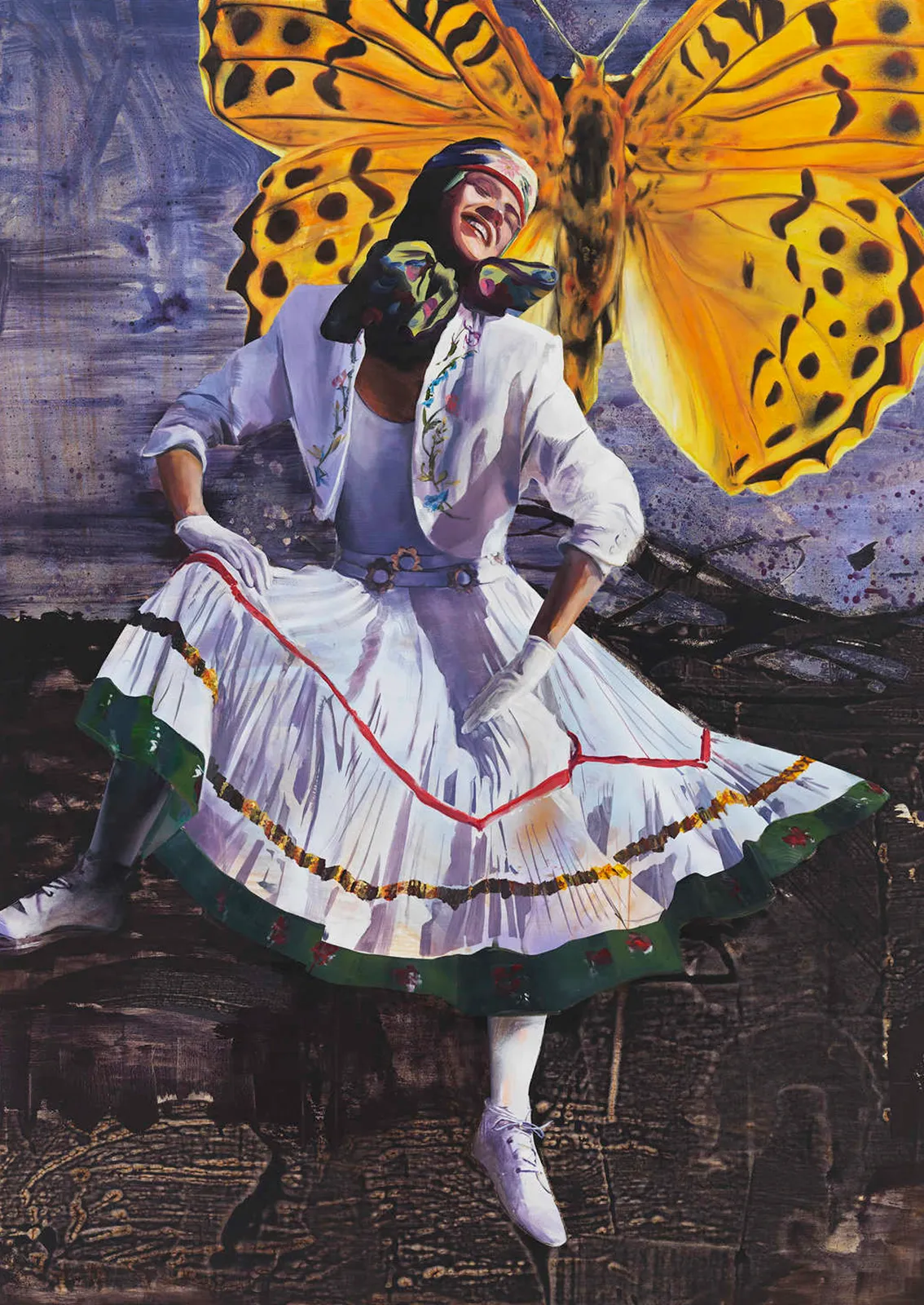 Un grupo de pinturas en la exposición representa personajes con conocimientos especializados o, como los describe Olowska, sus “musas activas”. Entre ellos se encuentran La Micóloga, experta en hongos, recogiendo setas; La Lepidopterista, coleccionista de mariposas que danza con un inmenso monarca detrás de ella; y La Jardinera, que se mantiene firme con unas tijeras de podar rojas colgando de una mano.