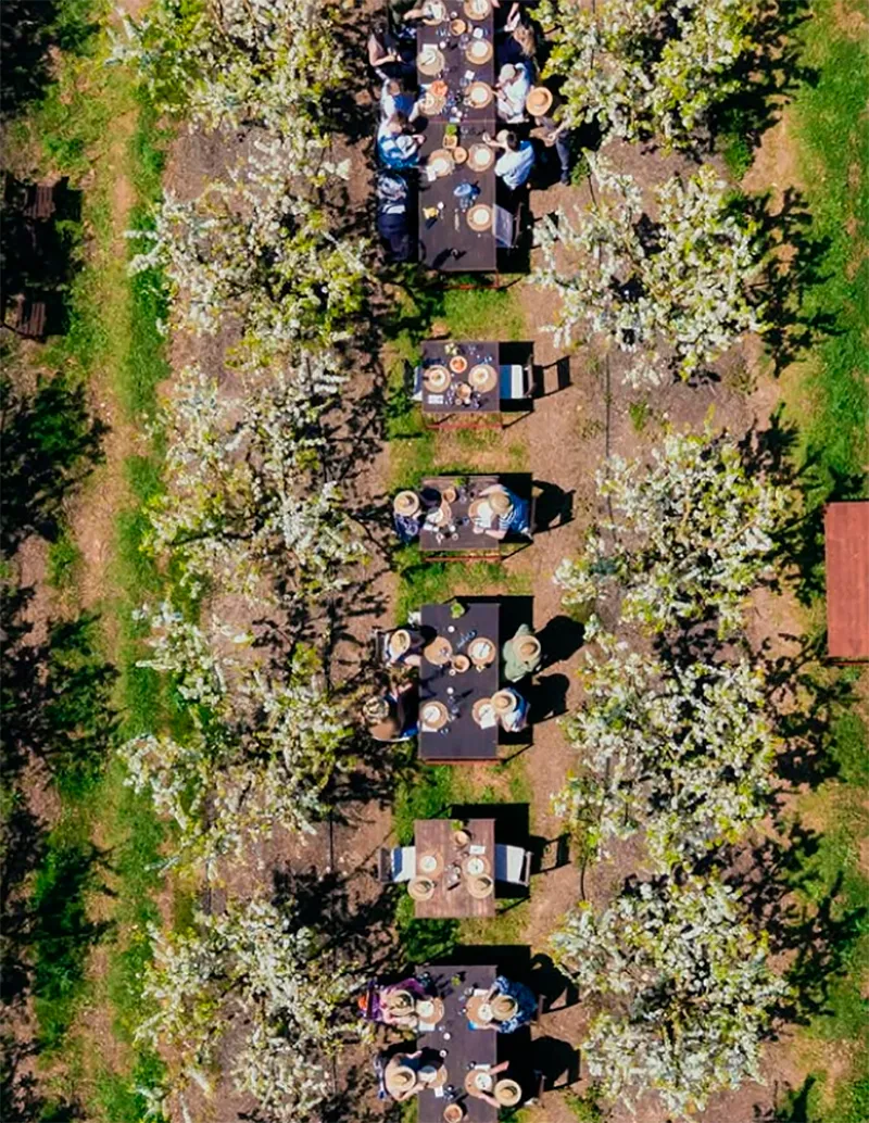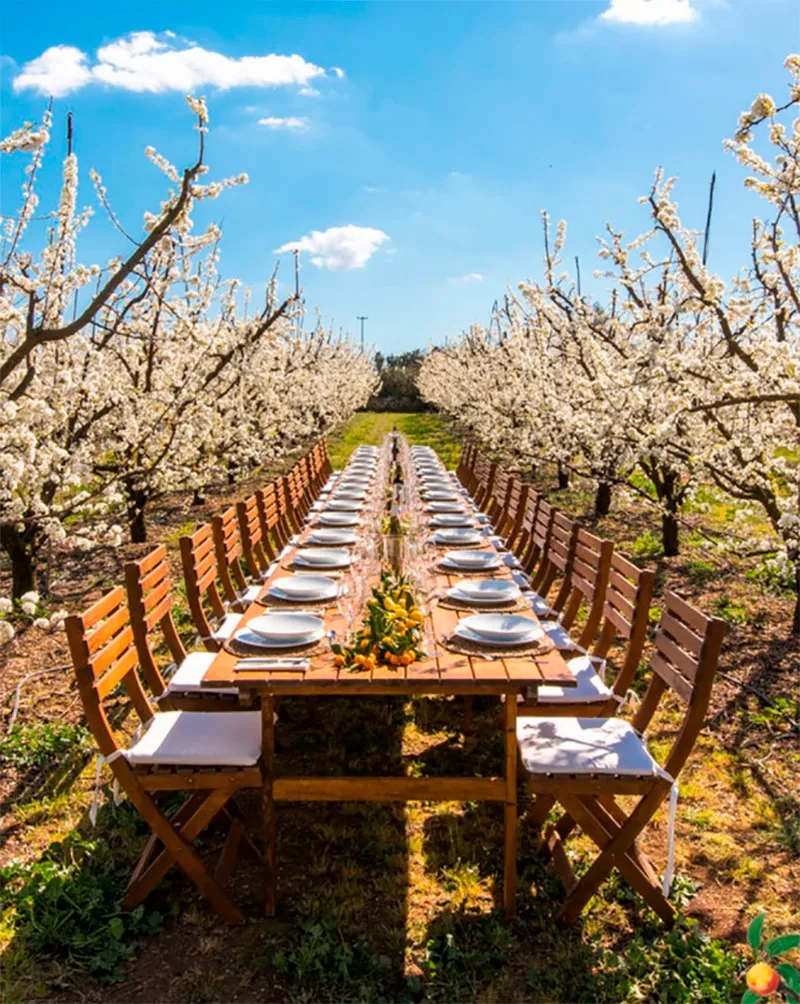 Terragust y como reforzar el vínculo entre campo y mesa. La iniciativa de Terragust comienza con almuerzos en el campo de ciruelos en plena floración, siempre que el clima lo permita, ofreciendo un escenario delicado para pasear entre árboles y sentir el paisaje de Mallorca de forma especial.