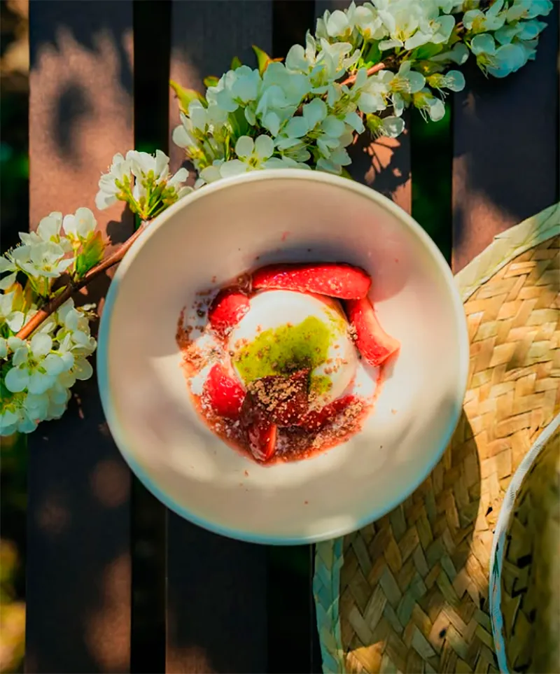 Durante el paseo, los asistentes observan cómo se cultivan frutas y verduras, prueban productos locales e incluso pueden recolectar algunos. Los menús, ya en marcha, destacan por su estacionalidad y proximidad, reforzando el vínculo entre campo y mesa.