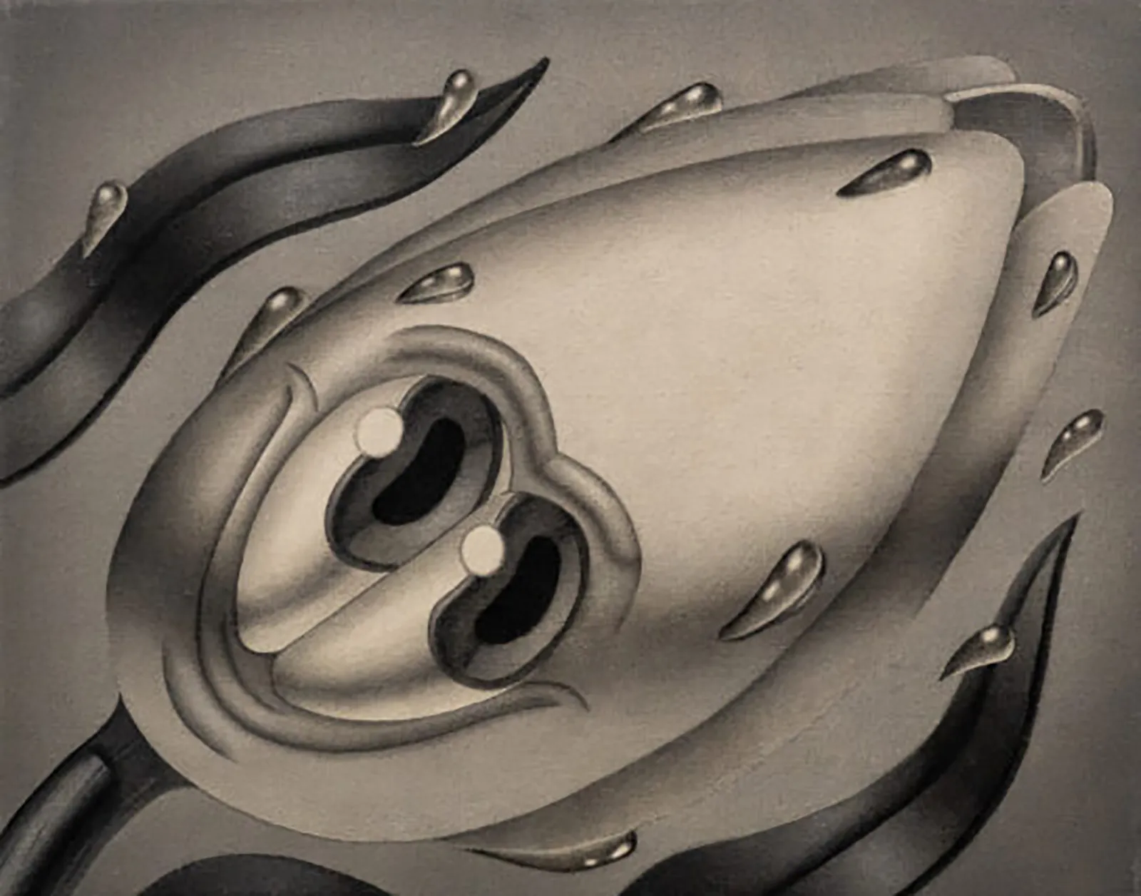 No acaba ahí el esfuerzo creativo, va más lejos, con una filogenética vigilancia concretada en figuras bifrontes pero uniformes que responden al mismo principio con el que se ensamblan las proteínas como nos enseña la genética molecular: un proceso de agrupar los elementos que forman membranas.