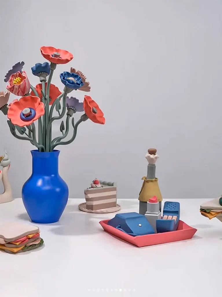 Genesis Belanger, objetos cotidianos como críticas al capitalismo. Una artista estadounidense conocida por sus esculturas de cerámica en tonos pastel que transforman objetos cotidianos en escenas sutilmente surrealistas y cargadas de subjetivismos.