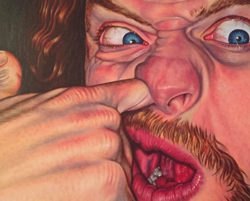 Un caracol se sienta en una helado a poca distancia de la boca de un hombre mientras chupa voluntariamente el frío sabor a naranja dulce de su polo. El inquietante absurdismo hiperrealista de Beau White. Es una imagen totalmente perturbadora pero grotescamente humorística: un fragmento de pesadilla, un miedo que provoca un escalofrío de inquietud…