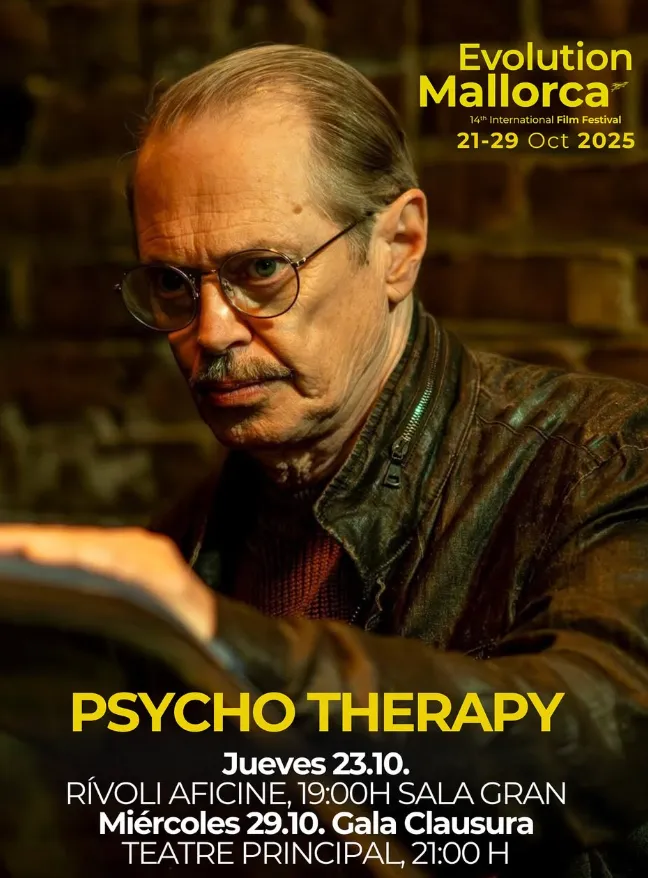 Cine con voz propia: Steve Buscemi presenta “Psycho Therapy” y conversa con los asistentes en el Evolution Mallorca International Film Festival. Psycho Therapy: sesión de cine y psicoanálisis colectivo en EMIFF. Parte del cartel de Emiff’25 y con Steve Buscemi como protagonista, Psycho Therapy, se presenta cargada de humor oscuro, situaciones absurdas, tensión y personajes…