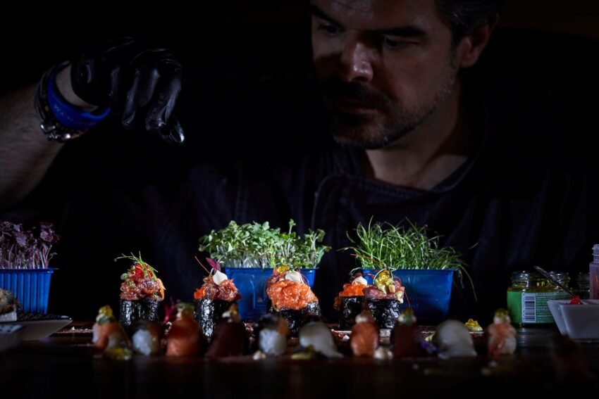 Pensado hasta el último detalle, cada plato que presenta el chef Alberto García y su equipo busca satisfacer la vista y el estómago, con una exquisita y armónica presentación. Cuenta con diferentes variedades de pescados y mariscos, como cangrejo de concha blanda, langostinos, pez limón, anguila, salmón, atún y pez mantequilla… Nosotros empezamos la degustación…